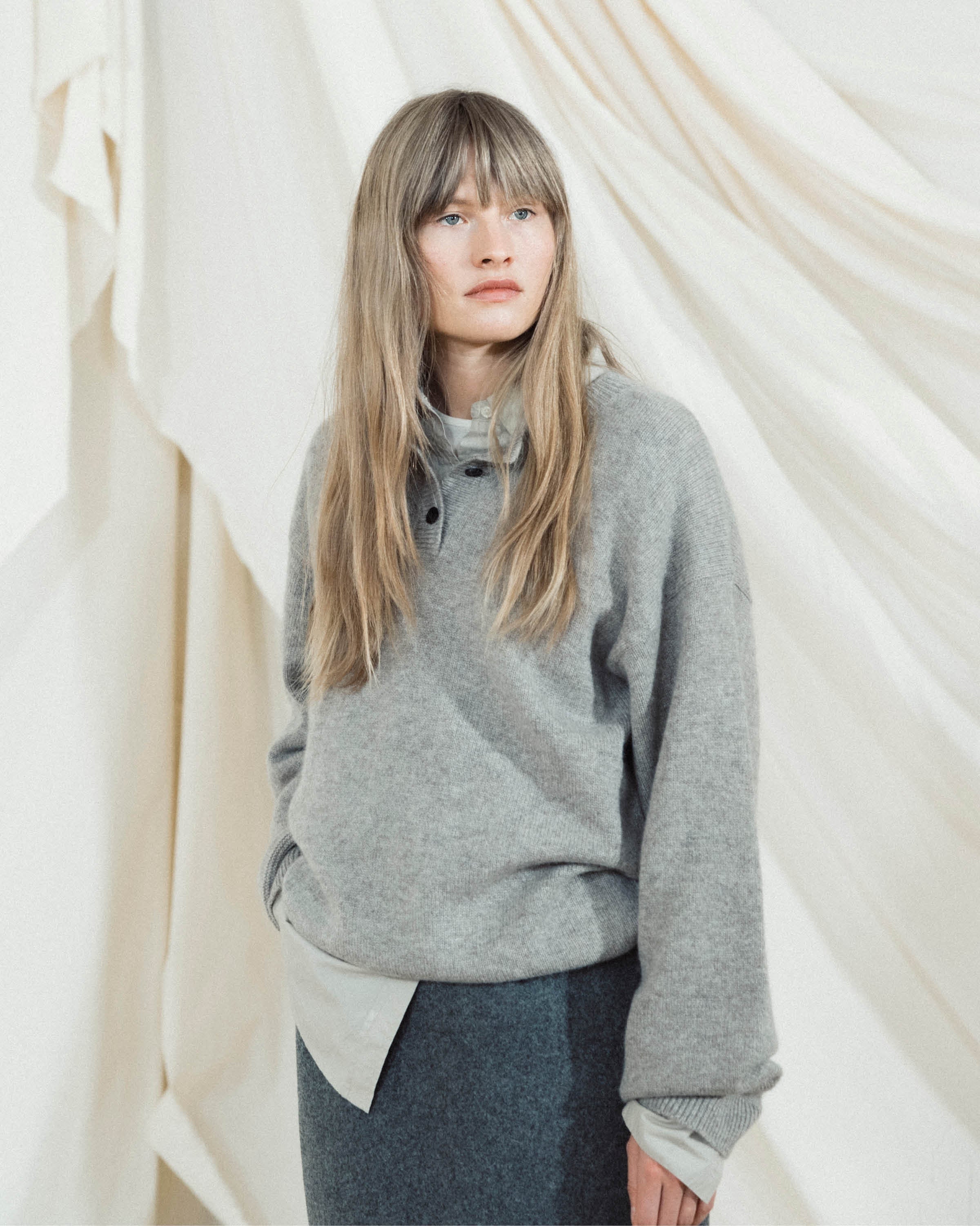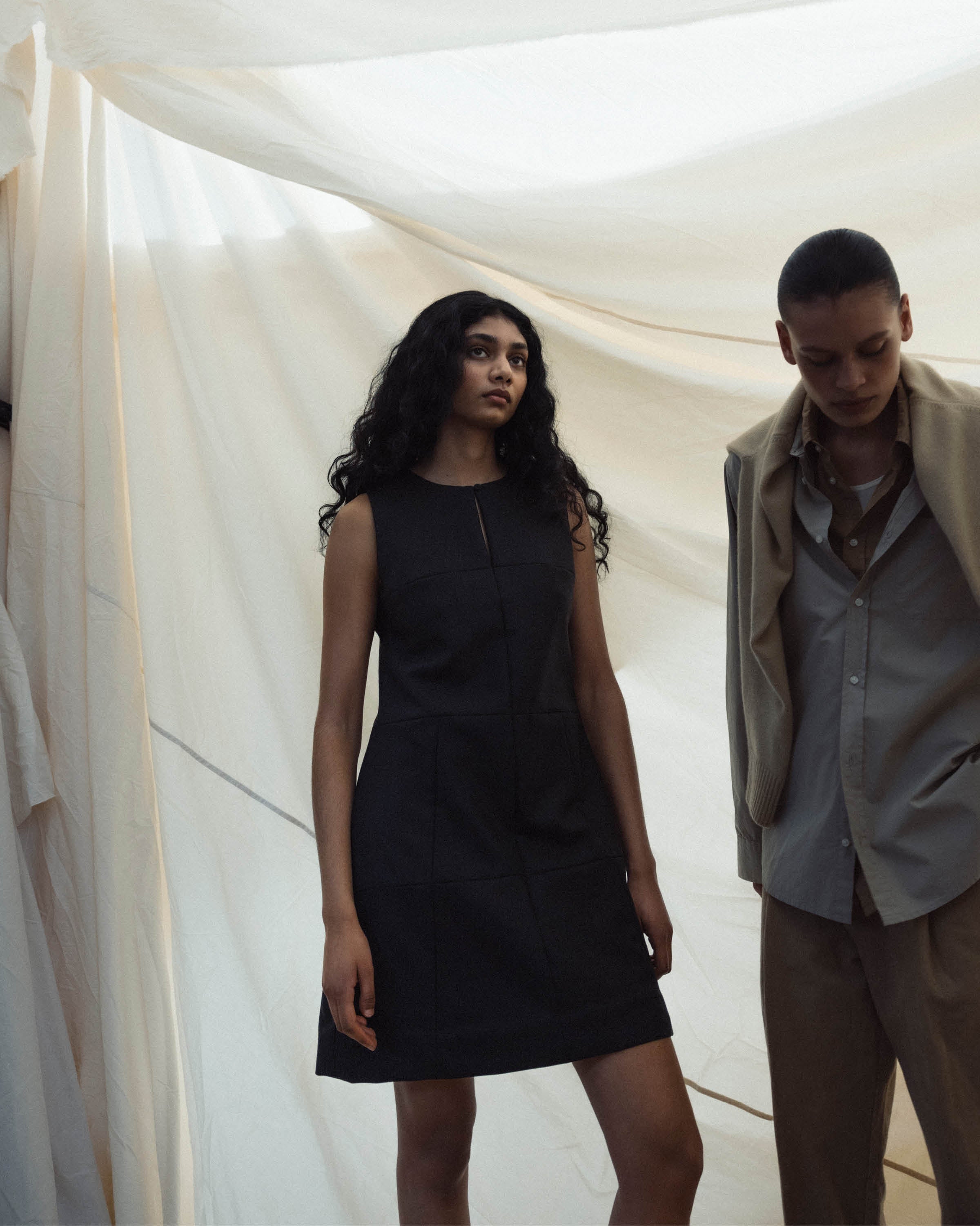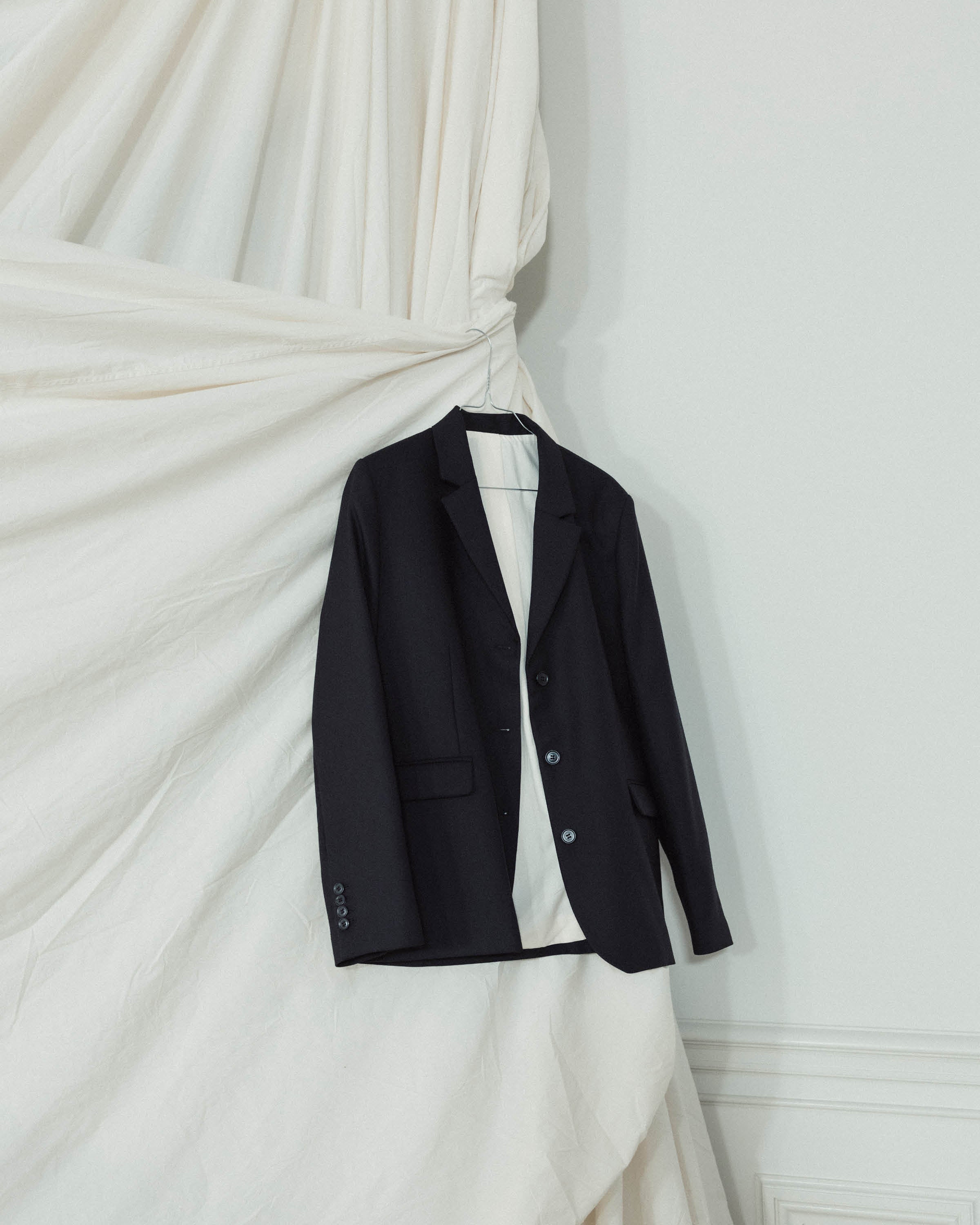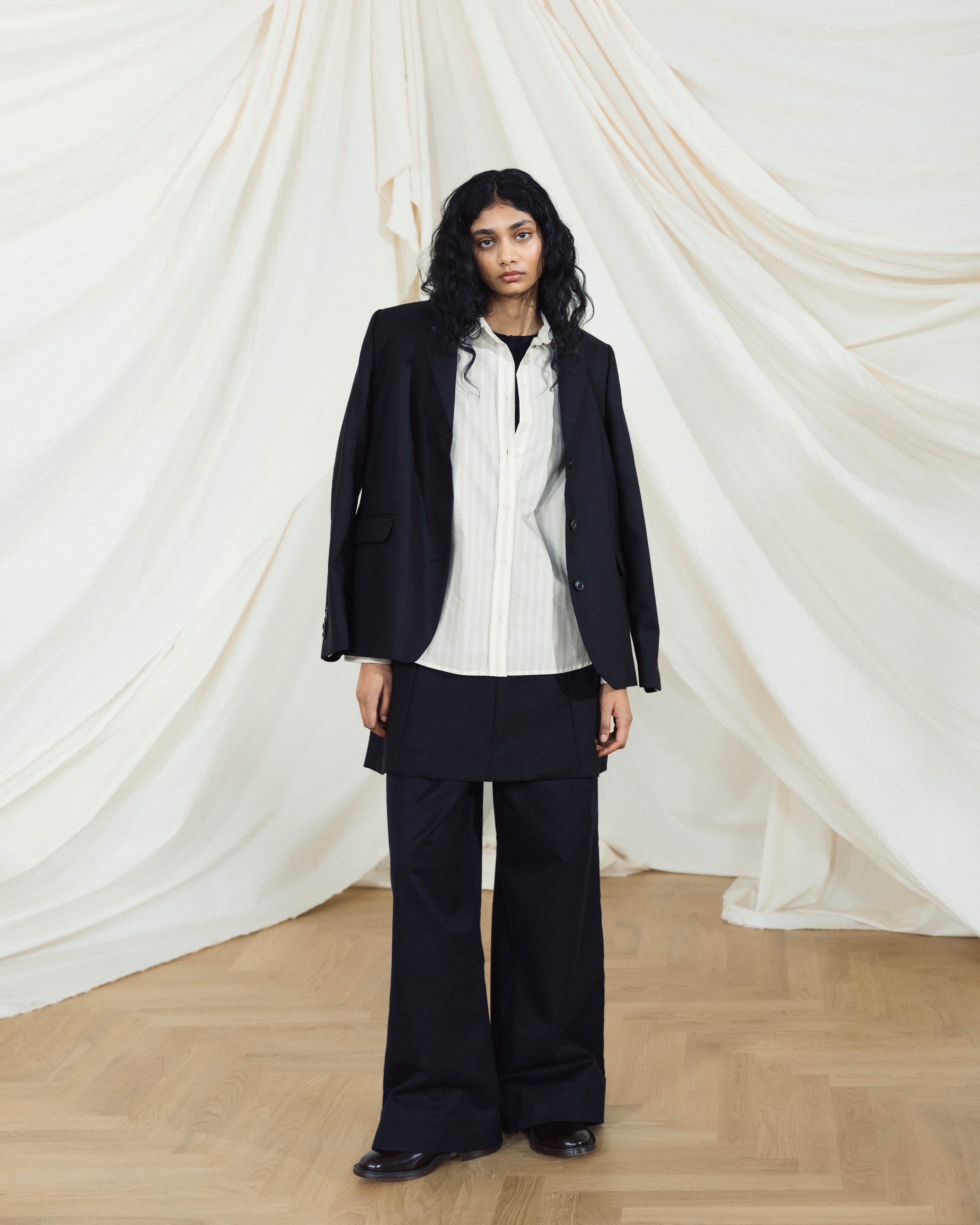 The heart of the presentation, "The Soft Wall"—a cloud-like installation of layered aiayu fabrics emphasizing craftsmanship and natural materials—took center stage. While an ambiance of modern melodies by Danish cellist CTM, Cæcilie Trier, filled the historic room. With deliberate grace, models glided through, showcasing the layered, versatile designs of our Autumn Winter 2025 collection.