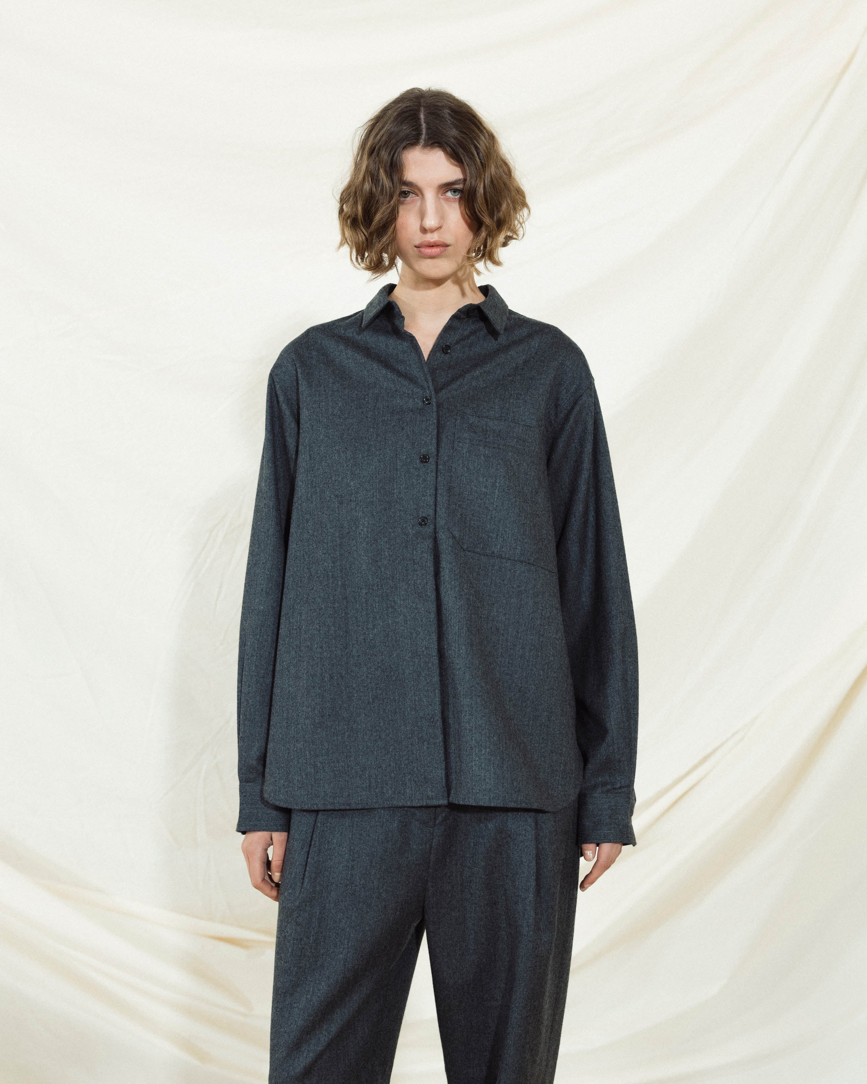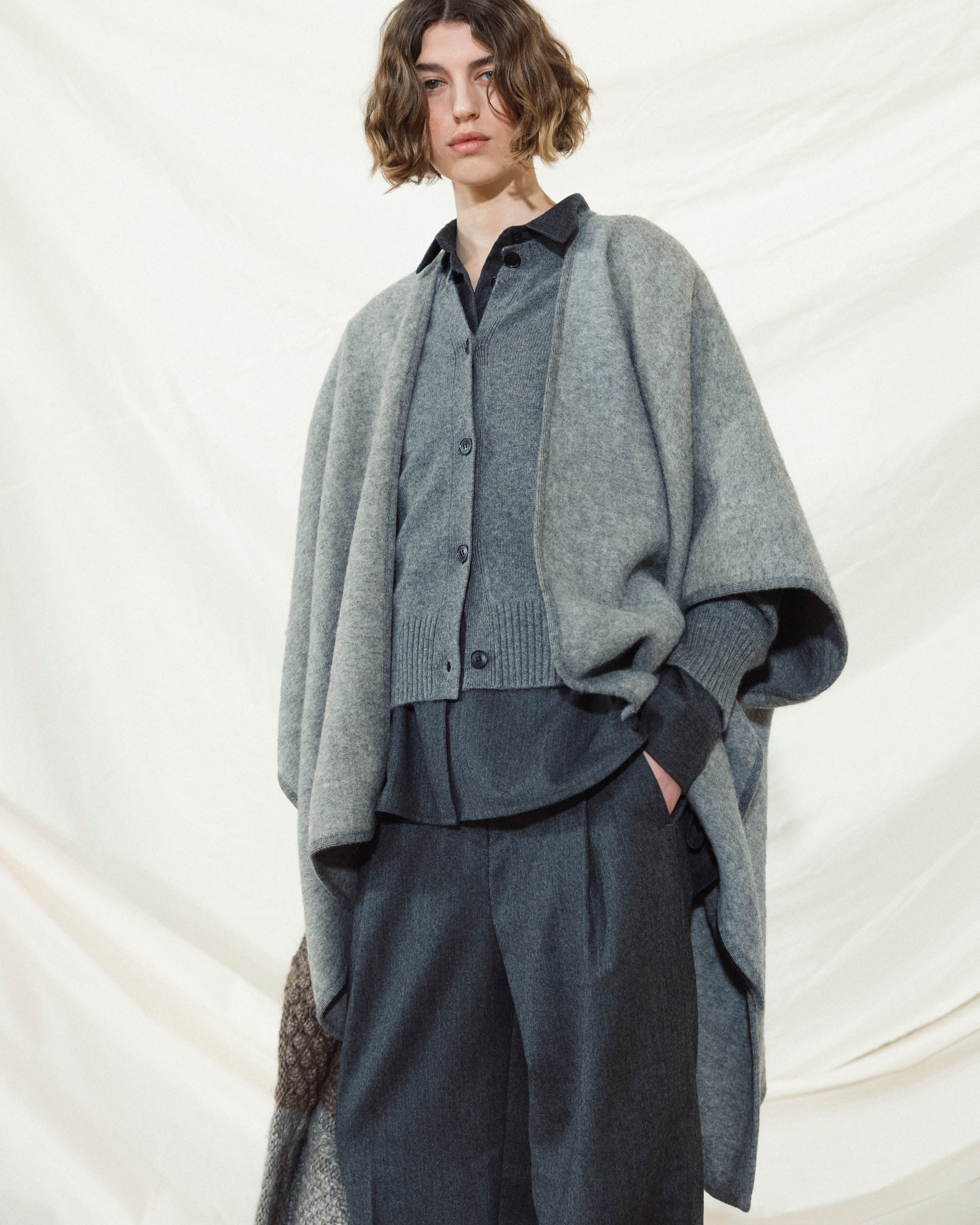 Our choices of materials are few, prioritizing responsibly sourced natural fibres from both animal and plant origins. Our undyed pieces take center stage again this season, reminding us about its natural origin with its differences and perfect imperfections appearing from the raw-material.